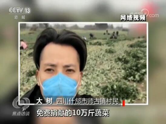 這是什邡市師古鎮(zhèn)的一個(gè)農(nóng)村網(wǎng)紅,網(wǎng)名叫大樹哥。疫情發(fā)生以后,他也想為武漢做點(diǎn)什么。他說,自己沒什么錢,但是地里有菜。